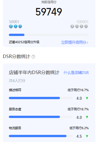 店铺信誉值为保护店铺隐私,故只展示当前信誉值所属区间